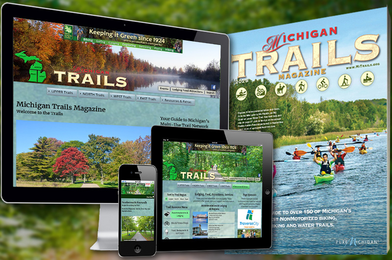 Michigan Trails Magazine is published annually in mid April and distributed through MDOT Welcome Centers, regional visitors bureaus, chambers of commerce, parks departments, bicycle and fitness shops, outdoor outfitters, cycling and trail organizations, subscribers, and a wide range of lodging and advertiser locations all over the state of Michigan.